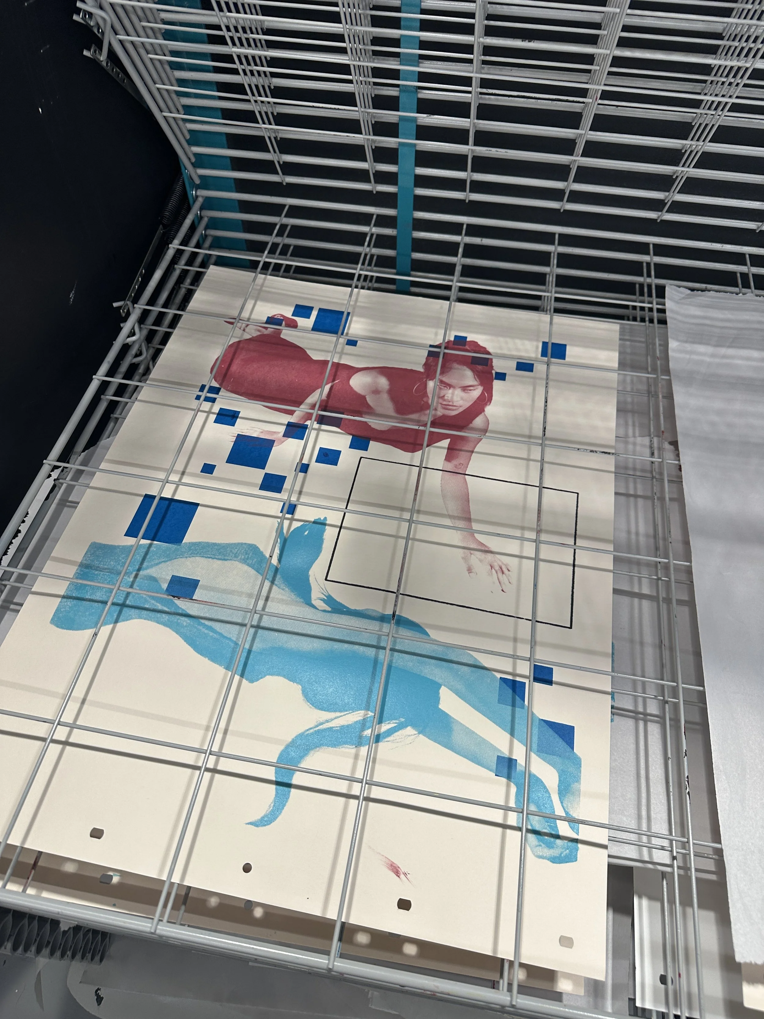 This encounter sparked the development of my thesis: a year-long exploration through photography, writing, knitting, and printmaking, motivated by bringing Stephanie to life. Stephanie, played by Lauren Luke, is a drifting apparition of embodied contradictions. Through this process, I have uncovered fragments of her identity, and in doing so, found my own Frankenstein in Stephanie.