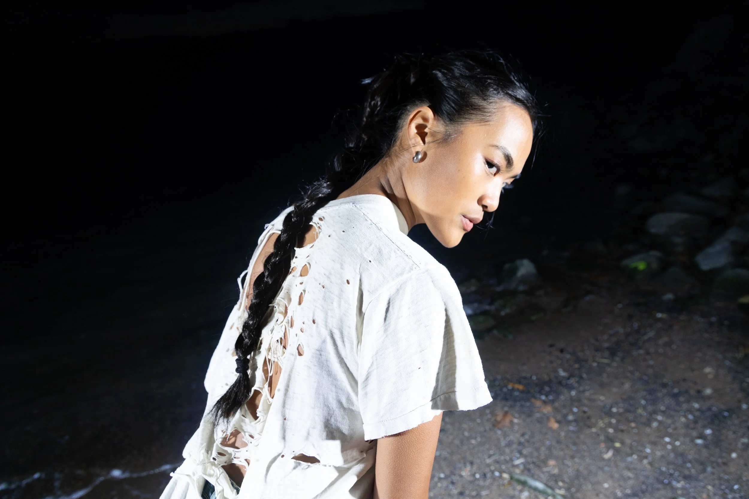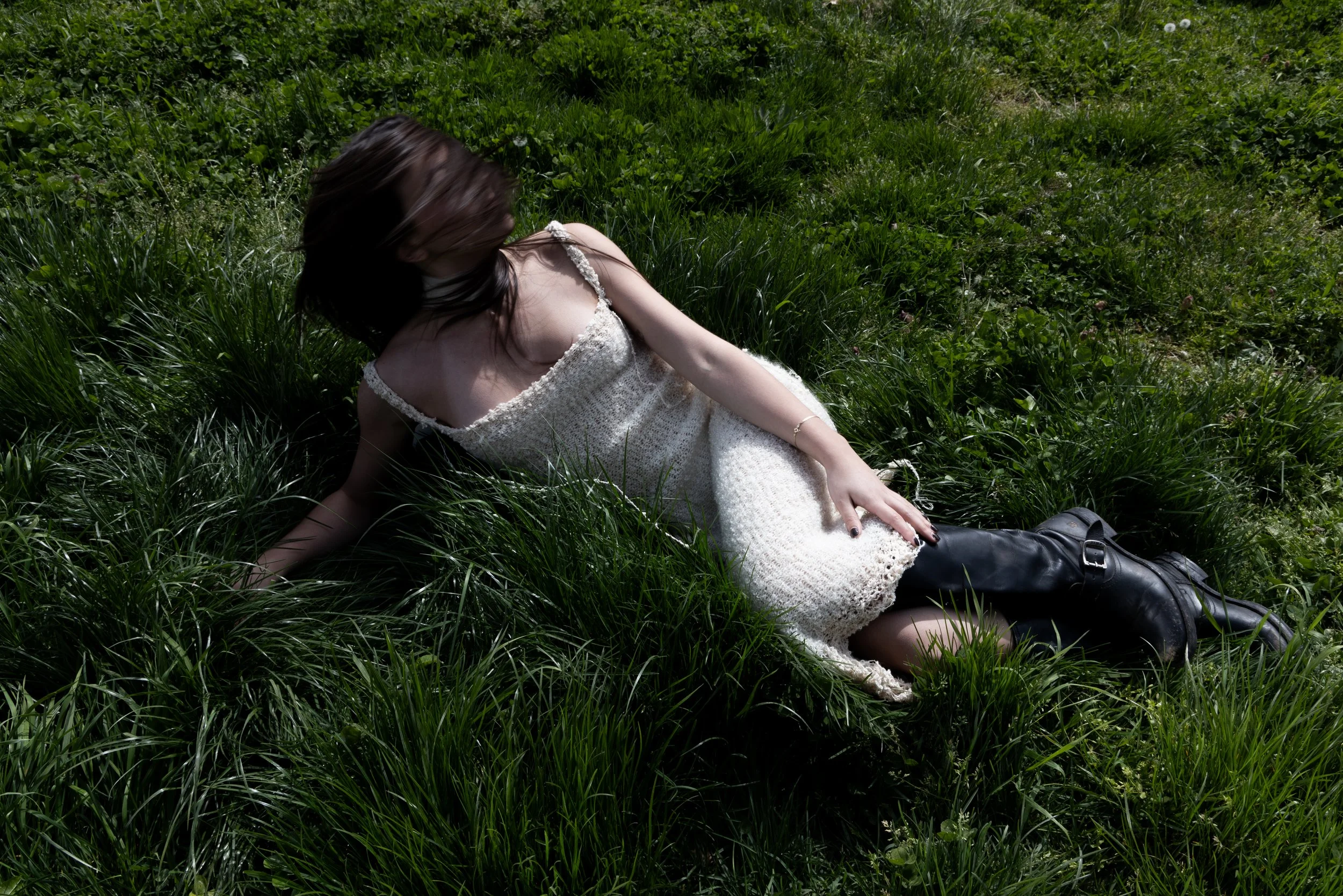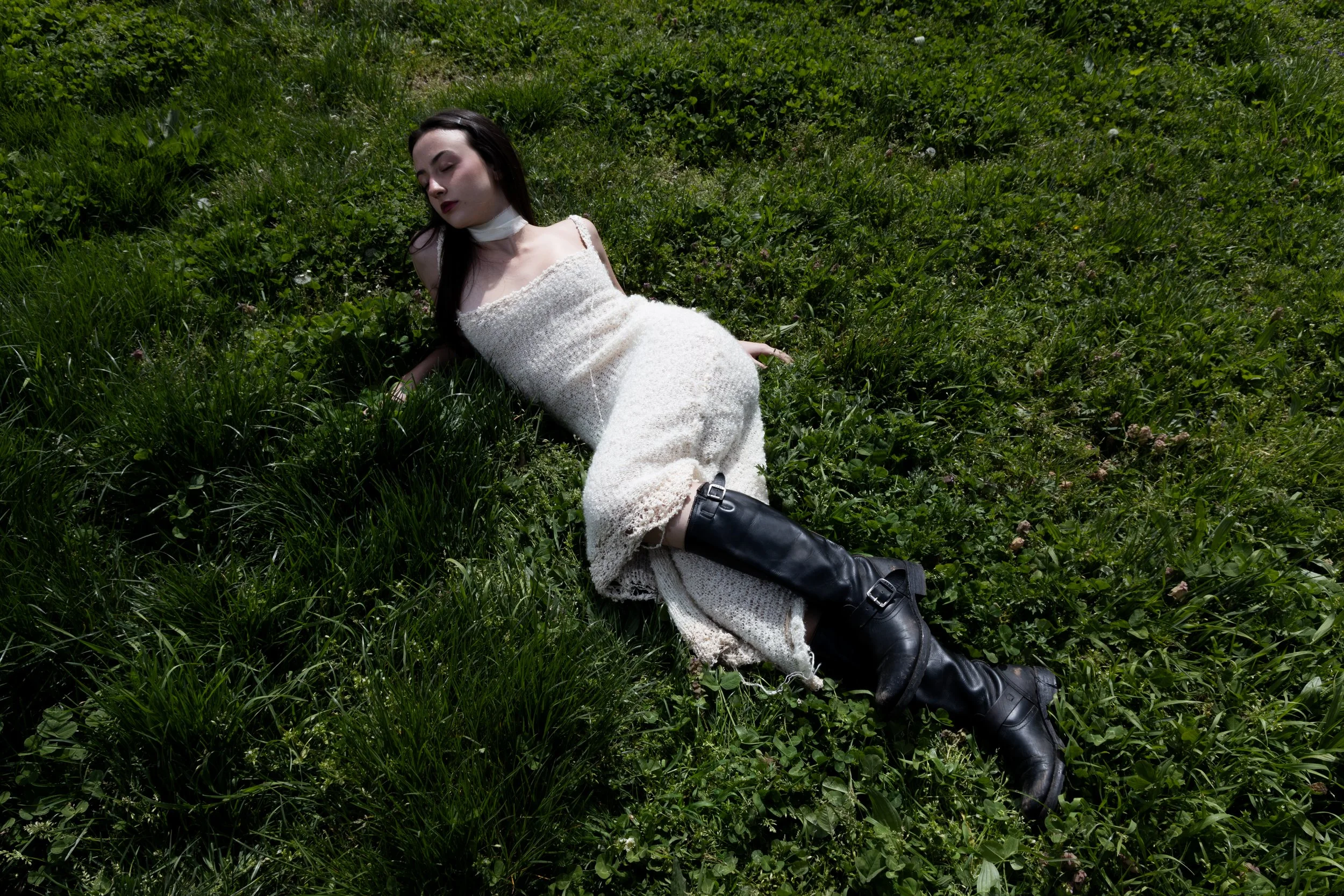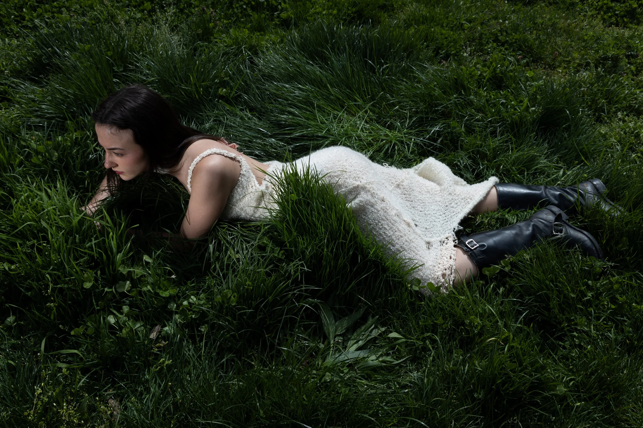Collaborative project with photographer Maeve Thompson. Direction by Kate Jones. White Mohair Knit Dress by Kate Jones